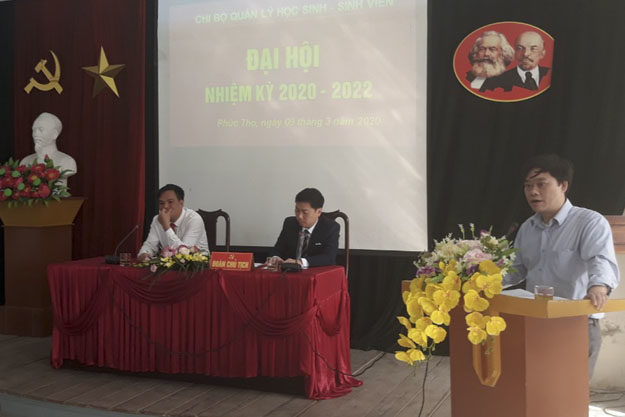 Phát biểu chỉ đạo tại Đại hội, đồng chí Khuất Văn Thanh– Thường vụ Đảng ủy, Trưởng phòng Tổ chức – hành chính, tổ trưởng tổ công tác của Đảng ủy đã đánh giá cao công tác chuẩn bị Đại hội của chi bộ; những nỗ lực của chi bộ trong nhiệm kỳ qua. Trong thời gian tới, chi bộ tiếp tục phát huy để lãnh đạo, chỉ đạo hoàn thành tốt các nhiệm vụ chính trị, quan tâm giáo dục đạo đức lối sống, giáo dục bản sắc văn hóa dân tộc cho HSSV; đổi mới quy trình, quy định trong quản lý HSSV , đảm bảo an ninh trật tự khu nội trú.