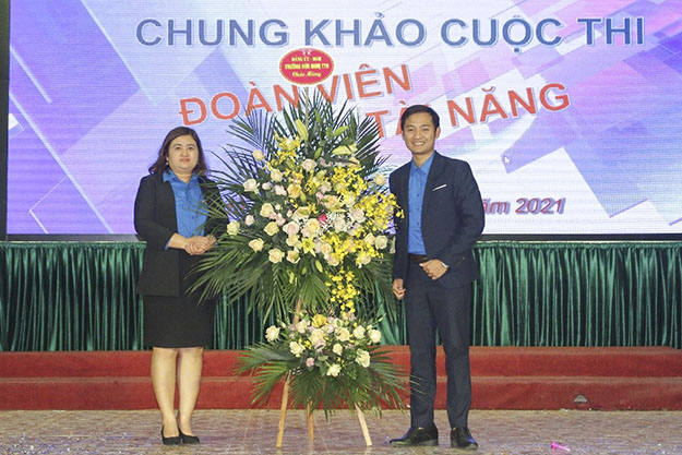 Mở đầu chương trình đồng chí Đoàn Hùng Anh – Bí thư đoàn trường đại diện BCH Đoàn trường ôn lại truyền thống vẻ vang 90 năm của Đoàn TNCS Hồ Chí Minh, tổng kết hoạt động trọng tâm trong tháng 3 của Đoàn trường, gửi lời cảm ơn đến sự quan tâm của Đảng uỷ, BGH và tri ân sâu sắc đến các thế hệ thầy cô giáo nguyên là cán bộ đoàn tại trường. Đại diện cho Đảng uỷ, BGH cô Nguyễn Thị Hải Yến – ĐUV, phó hiệu trưởng có lẵng hoa tươi thắm chúc mừng đoàn trường nhân dịp kỷ niệm 90 năm thành lập.
