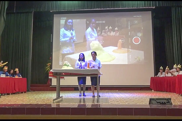 Phần thí nghiệm ảo thuật do hai cô giáo Nguyễn Ngọc Bích và Nguyễn Thị Ngọc Hà thực hiện