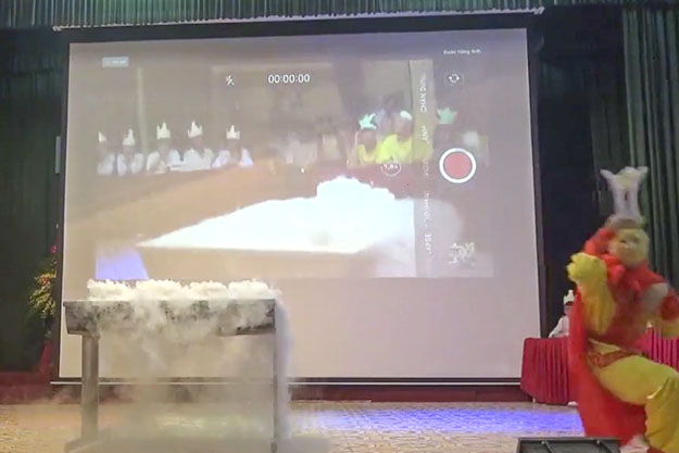 Phần thí nghiệm ảo thuật do hai cô giáo Nguyễn Ngọc Bích và Nguyễn Thị Ngọc Hà thực hiện