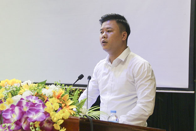 Đồng chí Đoàn Hùng Anh đại diện BCH nhiệm kì mới phát biểu nhận nhiệm vụ