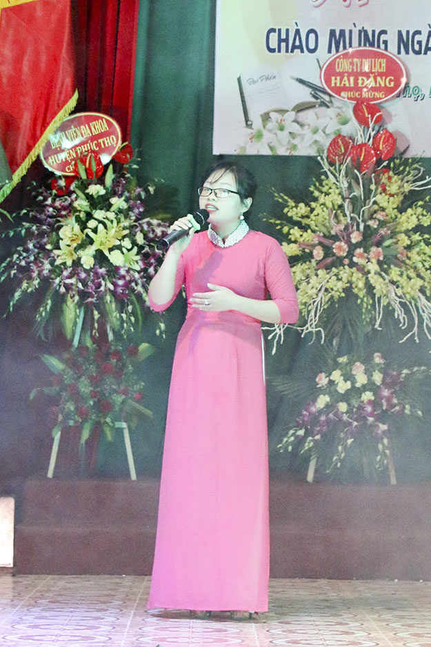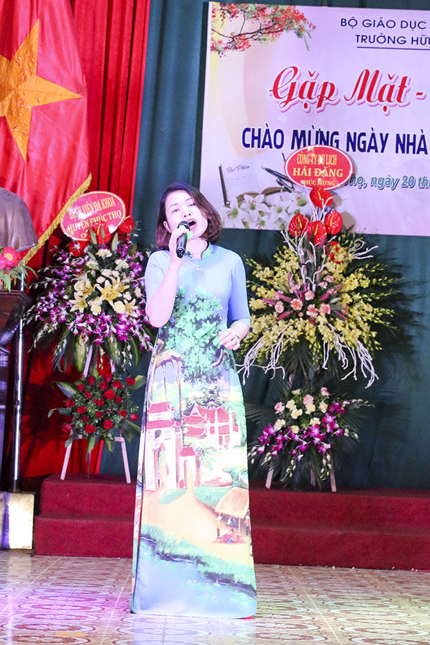 Phát biểu chúc mừng tập thể các thầy cô giáo, em Ma Thị Linh – Lớp 12A2, đã nêu lên những suy nghĩ, tình cảm và những lời tri ân tốt đẹp nhất tới quý thầy cô giáo, những người đã giữ và truyền ngọn lửa, niềm tin đối với nghề. Nhìn vào tấm gương của tận tuỵ của các thầy cô, các em học sinh xin hứa luôn cố gắng rèn đức, luyện tài, xứng danh học sinh trường Hữu Nghị T78, trở thành những người công dân có ích cho xã hội; góp phần cùng với Nhà trường xây dựng Trường Hữu Nghị T78 ngày càng vững mạnh.