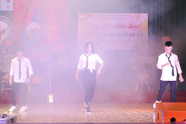 Cũng thật bất ngờ, sau những giây phút tất cả mọi người đang lắng dịu thì bỗng lại trở nên ồn ào, vui tươi hơn bao giờ hết. Các bạn học sinh – sinh viên được thưởng thức các tiết mục văn nghệ, màn biểu diễn thời trang mà nhân vật chính không ai khác chính là những thầy cô giáo. Những người mà trong mắt các em học sinh luôn đóng đinh với hình ảnh nghiêm túc, mẫu mực. Cả hội trường như nổ tung mỗi khi có các thầy cô giáo bước ra sân khấu, tự tin thể hiện tài năng của mình. Tất cả tạo nên một bầu không khí vui tươi, đầm ấm và gần gũi giữa thầy và trò trong ngày kỉ niệm đầy ý nghĩa.