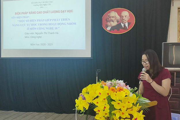 Tiêu biểu trong phần trình bày của giáo viên dự thi là biện pháp: “Giúp phát triển năng lực tự học trong hoạt động nhóm của ở môn công nghệ 10” của cô giáo Nguyễn Thị Thanh Hà; “Dạy học một số chủ đề môn Hóa theo bài học STEM” của cô giáo Vũ Thanh Nga; “Sử dụng sơ đồ khối để tăng hiệu quả dạy học môn công nghệ” của cô Hoàng Thị Hương; “Ứng dụng CNTT để tổ chức các trò chơi nâng cao chất lượng kiểm tra bài cũ, môn Vật Lý 10” của cô giáo Nguyễn Thị Hồng Thanh…