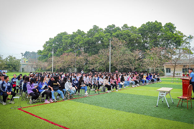 Chương trình học tập trải nghiệm bắt đầu với phần với phần giải đáp những thắc mắc của học sinh trường Hữu Nghị T78. Trước những câu hỏi của học sinh về tổng quan các ngành học, chương trình đào tạo, học phí, cơ hội du học, cơ hội việc làm… thầy Nguyễn Đức Trí – hiệu trưởng trường Đại học Công nghiệp Việt Hung đã có phần giải đáp cặn kẽ, chi tiết để học sinh có được cái nhìn đúng đắn về những hướng đi và cơ hội sau khi tốt nghiệp Trung học phổ thông.
