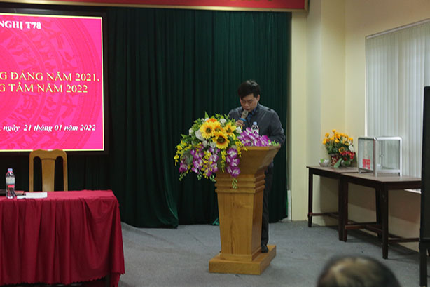 Hội nghị đã được nghe đồng chí Khuất Văn Thanh Phó bí thư Đảng ủy trình bày tóm tắt Báo cáo tổng kết công tác xây dựng Đảng năm 2021 và triển khai nhiệm vụ trọng tâm năm 2022