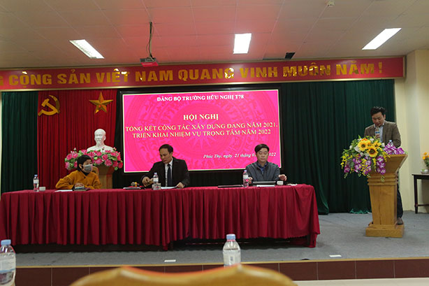 Sáng ngày 21/1, Đảng bộ trường Hữu Nghị T78 tổ chức hội nghị tổng kết công tác xây dựng Đảng năm 2021, triển khai phương hướng, nhiệm vụ trọng tâm năm 2022. Dự hội nghị có đồng chí Lê Phú Thắng Bí thư Đảng ủy, Hiệu trưởng; các đồng chí trong BCH Đảng bộ cùng toàn thể đảng viên thuộc Đảng bộ trường.