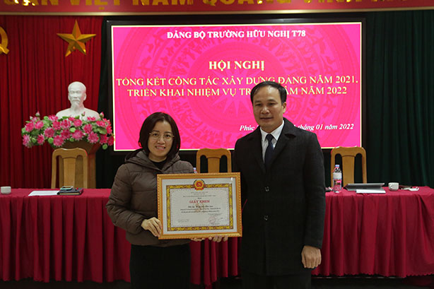 Sáng ngày 21/1, Đảng bộ trường Hữu Nghị T78 tổ chức hội nghị tổng kết công tác xây dựng Đảng năm 2021, triển khai phương hướng, nhiệm vụ trọng tâm năm 2022. Dự hội nghị có đồng chí Lê Phú Thắng Bí thư Đảng ủy, Hiệu trưởng; các đồng chí trong BCH Đảng bộ cùng toàn thể đảng viên thuộc Đảng bộ trường.