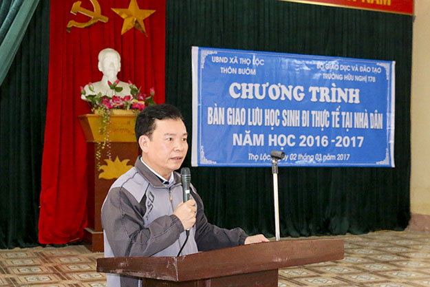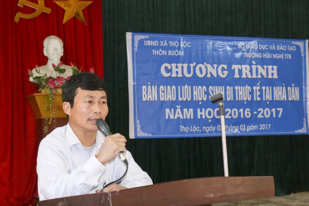 Tiếp nối sự thành công của Đề án “ Đưa lưu học sinh đi thực tế tại nhà dân” các năm học 2014-2015 và 2015-2016; được sự quan tâm chỉ đạo của Đảng ủy, Ban Giám hiệu nhà trường, sự ủng hộ, tạo điều kiện thuận lợi của lãnh đạo và nhân dân địa phương, chiều ngày 02/03/2017, Ban tổ chức chương trình đã đưa 81 Lưu học sinh Lào vào sinh sống cùng 40 hộ dân tại thôn Bướm và thôn Ổ Thôn, xã Thọ Lộc, huyện Phúc Thọ trong thời gian từ 02/03/2017 đến 22/03/2017.