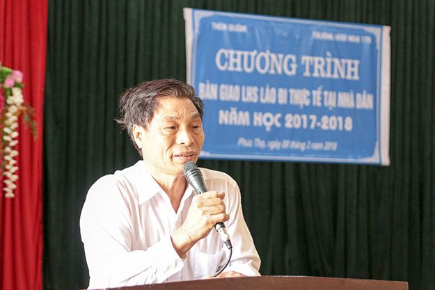 Thay mặt cho lãnh đạo nhà trường, đồng chí Lê Phú Thắng- Phó Bí thư Đảng ủy- Phó Hiệu trưởng nhà trường, Trưởng ban tổ chức đã cảm ơn sự quan tâm, giúp đỡ của chính quyền địa phương xã Thọ Lộc, sự nhiệt tình ủng hộ, tận tình chăm sóc, tạo môi trường sinh hoạt, học tập tốt nhất của các hộ gia đình dành cho các bạn LHS Lào.
