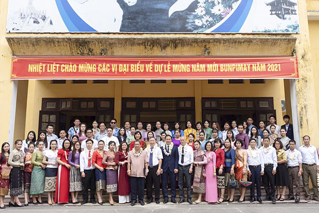 Đến dự và chung vui tết Bunpimay năm 2021, thầy và trò nhà trường vui mừng được đón một số đồng chí nguyên Hiệu trưởng nhà trường, đại diện HTX Thành An, Công ty du lịch Đông Á, các đồng chí đại diện Hiệu đoàn LHS Lào trường Hữu Nghị 80…