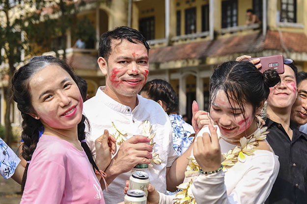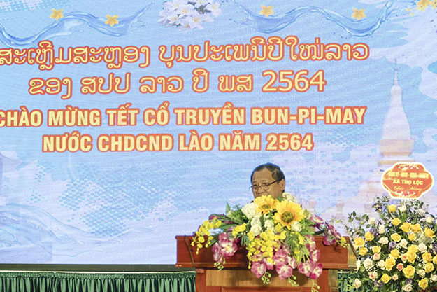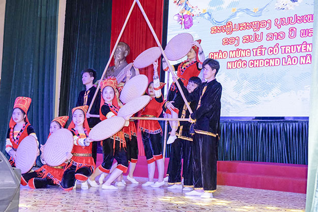 Tại buổi lễ, những nghi thức truyền thống của Tết cổ truyền Bunpimay được tổ chức trang trọng và ấm áp. Sau chương trình văn nghệ mở đầu là bài phát biểu của đồng chí Alounthoong – Hiệu đoàn trưởng khối LHS về ý nghĩa Tết Bunpimay của nhân dân các bộ tộc Lào. Kế đến là phát biểu chúc mừng năm mới của đồng chí Lê Phú Thắng-BTĐU- Hiệu trưởng nhà trường. Đồng chí Uthay Bannhavong- Bi thư thứ nhất-Phó phòng tham tán văn hóa giáo dục –Đại sứ quán nước CHDCND Lào tại Việt Nam cũng thay mặt ĐSQ phát biểu chúc Tết và căn dặn việc học, việc ăn ở, sinh hoạt và đi lại của LHS Lào tại Việt Nam, nhất là trong dịp Tết. Đồng chí cũng cảm ơn các thầy cô giáo lãnh đạo trường, các thầy cô trực tiếp giảng dạy, các đồng chí cán bộ trong trường đã quan tâm giúp đỡ LHS Lào ngay từ những ngày đầu bỡ ngỡ, làm tốt công tác phòng chống dịch Covid-19 để LHS yên tâm học tập.