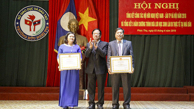 2 tập thể đón nhận khen thưởng vì thực hiện tốt chương trình Đưa lưu học sinh Lào đi thực tế tại nhà dân