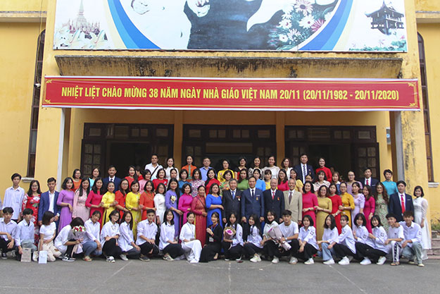 Cũng trong lễ kỉ niệm đại diện cho tập thể CBGV nhà trường và các em học sinh, Ban giám hiệu nhà trường đã tặng hoa chúc mừng các đồng chí nguyên là hiệu trưởng, phó hiệu trưởng, các đồng chí nguyên là trưởng các phòng ban đã nghỉ hưu của nhà trường. Những đóa hoa tươi thắm là lời tri ân chân thành, lòng biết ơn sâu sắc của tập thể CBGV và học sinh nhà trường gửi tới các cựu giáo chức những thế hệ đi trước đã cống hiến, dìu dắt và để lại những thành tích vẻ vang cho nhà trường.