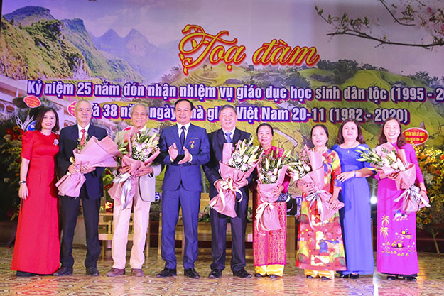 Trong buổi Tọa đàm kỉ niệm 25 năm đón nhận nhiệm vụ giáo dục học sinh dân tộc và 38 năm ngày nhà giáo Việt Nam 20/11, các thầy nguyên là hiệu trưởng, phó hiệu trưởng chia sẻ rất nhiều những cảm xúc về một thời kỳ gian khó nhưng rất đáng tự hào của nhà trường 25 năm qua. Cũng trong buổi lễ, nhiều thầy cô giáo dạy tốt, chủ nhiệm giỏi, giáo viên trẻ được mời tham gia tọa đàm như cô Nguyễn Thị Ngọc Bích- Trưởng phòng Đào tạo, cô Đào Thị Minh Thúy- Tổ trưởng tổ Sử-Địa-GDCD, cô Nguyễn Thị Song Hà-GV môn Sinh học,cô Ngô Thị Hiếu-GV môn GDCD, thầy Nguyến Thanh Tùng-GV môn Quốc phòng an ninh. Các thầy cô chia sẻ nhiều kinh nghiệm dạy học và chủ nhiệm quý báu. Cô giáo Nguyễn Thị Ngọc Bích – Trưởng phòng Đào tạo chia sẻ những cảm xúc, suy nghĩ của mình về kinh nghiệm giảng dạy, về sự mạnh dạn đổi mới phương pháp giảng dạy,tiếp cận chương trình giáo dục phổ thông tổng thể, đón đầu chương trình sách giáo khoa mới, về sự tích cực đào tạo nâng cao trình độ của đội ngũ giáo viên nhà trường.Qua đó muốn nhắn nhủ đến các học trò thân yêu của mình: “Người thầy không thể nào dạy tốt nếu không có sự hỗ trợ hợp tác ủng hộ từ phía học sinh, chính các em là nguồn cảm hứng, là động lực để thầy cô hoàn thành xuất sắc nhiệm vụ dạy học”.