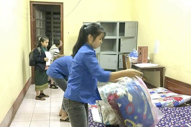 Trong năm học này, nhờ có sự phối hợp chặt chẽ giữa các phòng ban với giáo viên chủ nhiệm, sự giúp đỡ nhiệt tình của đội ngũ đoàn viên thanh niên xung kích khối học sinh Việt Nam nên công tác đón nhận LHS diễn ra nhanh chóng, an toàn, hiệu quả. Trang cấp, đồ dùng sinh hoạt cá nhân của LHS được chuẩn bị chu đáo. Ngay khi đến trường, các bạn LHS Lào đã được giáo viên chủ nhiệm tiếp nhận, sắp xếp phòng ngủ, bàn giao trang cấp và có bữa ăn đầu tiên tại nhà ăn tập thể của trường. Sau hai ngày nghỉ ngơi, các bạn LHS sẽ chính thức bắt đầu học từ ngày 6/10/2017.