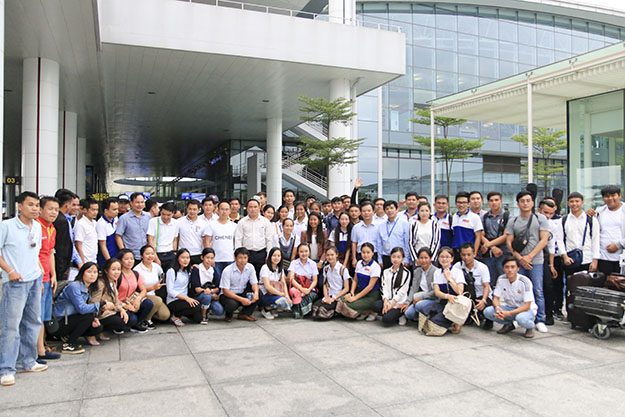 Trực tiếp đón đoàn tại sân bay có thầy Nguyễn Toàn Nghĩa- Bí thư Đảng ủy- Hiệu trưởng nhà trường, các thầy cô trong BGH và Phòng Quản lý HSSV.