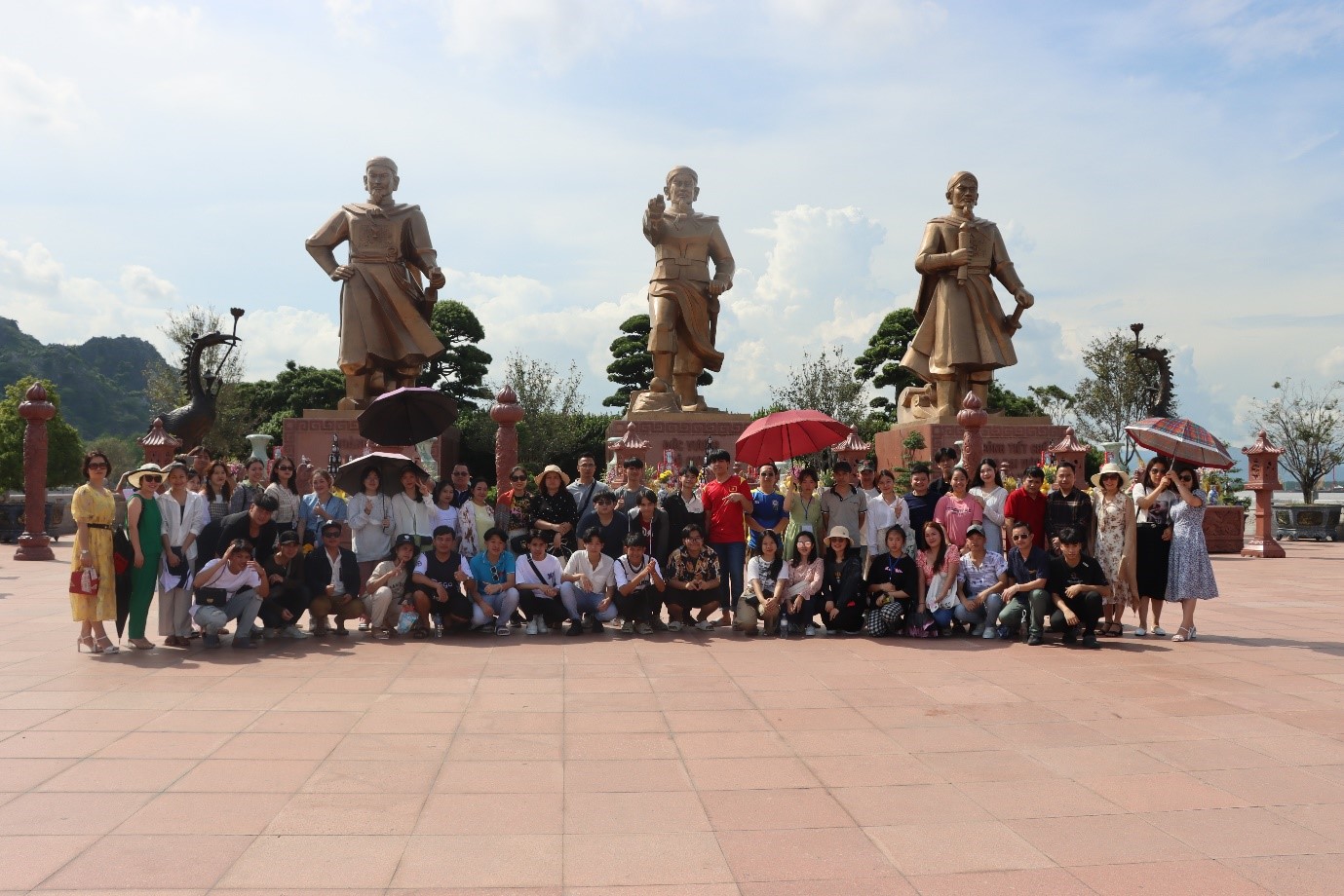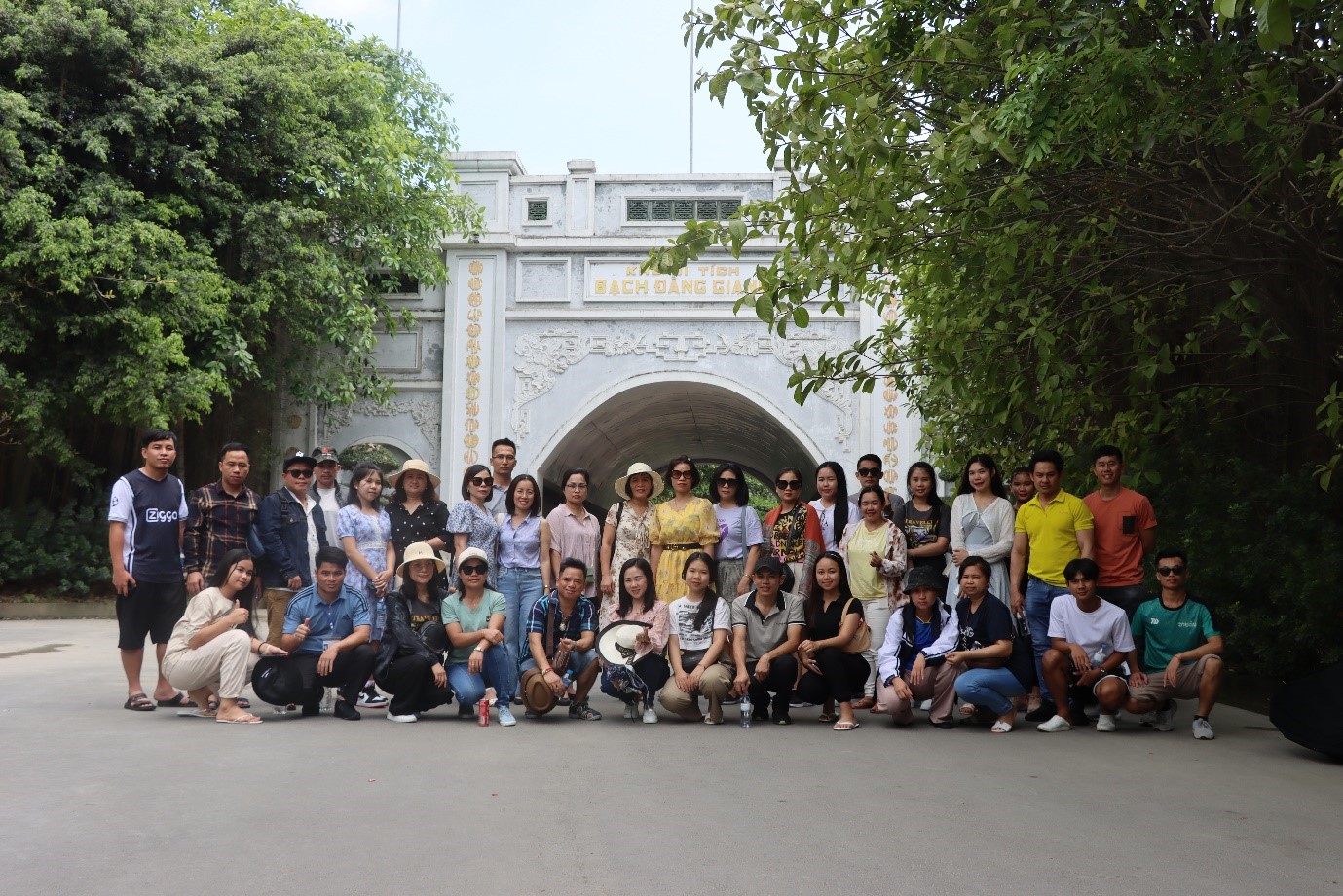 Tạm biệt Hạ Long, điểm dừng chân tiếp theo của đoàn là Khu di tích Bạch Đằng Giang (Tràng Kênh-Thủy Nguyên – Hải Phòng) – một quần thể kiến trúc quy mô bề thế, khang trang trên khu đất đắc địa của dãy núi Tràng Kênh. Tại đây, LHS Lào có cơ hội được tìm hiểu về Cửa sông Bạch Đằng – một địa danh đặc biệt gắn liền với 3 trận thủy chiến nổi tiếng chống ngoại xâm của nhân dân Việt Nam. Đó là những trận chiến biểu tượng cho tinh thần của một dân tộc anh hùng, chống lại những thế lực ngoại xâm lớn mạnh. Khu di tích có 3 pho tượng lớn của các bậc danh tướng: Vua Lê Đại Hành, Quốc Công Tiết chế Hưng Đạo Vương Trần Quốc Tuấn và Đức Vương Ngô Quyền sừng sững ngự trên mặt sông. Phía dưới là bãi cọc, tái tạo chứng tích lịch sử ấn tượng một thuở non sông vang dội. Các bạn LHS Lào thực sự ấn tượng với truyền thống chống giặc ngoại xâm vẻ vang của dân tộc Việt Nam.