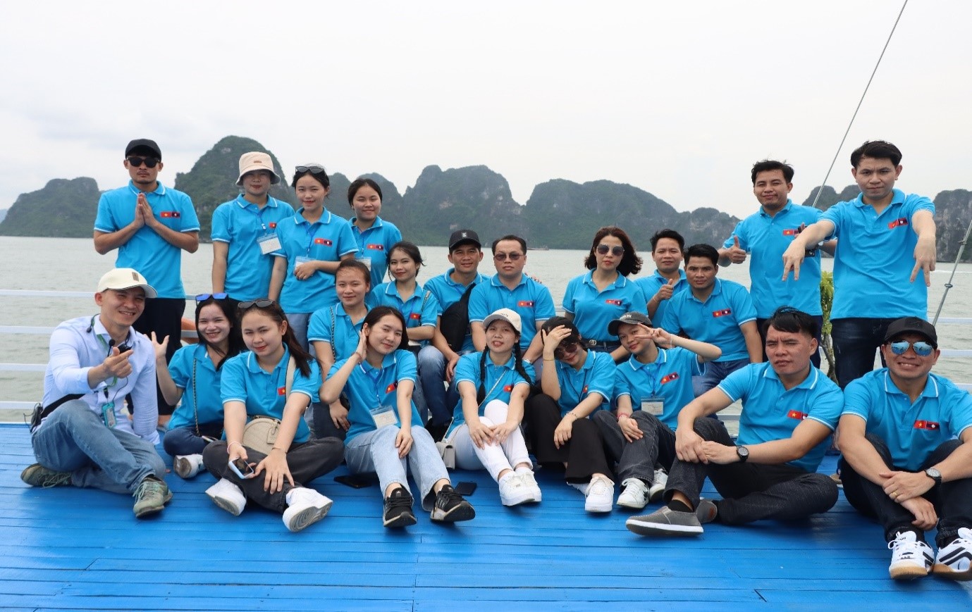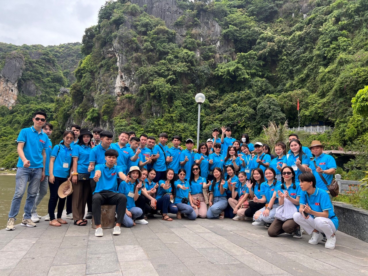 Điểm dừng chân đầu tiên của đoàn là mảnh đất Quảng Ninh xinh đẹp. Nơi đây nổi tiếng với Vịnh Hạ Long– một trong 7 kì quan thiên nhiên thế giới mới. Tại Hạ Long, các bạn LHS Lào được đi du thuyền thăm cảnh đẹp trên vịnh. Làn nước biển trong xanh tươi mát với động Thiên Cung, Hang Đầu Gỗ, hòn trống mái, đỉnh Lư Hương kì thú làm say đắm lòng người. Tất cả các bạn LHS đều say sưa ngắm cảnh và không quên check in cho mình những tấm ảnh để đời.