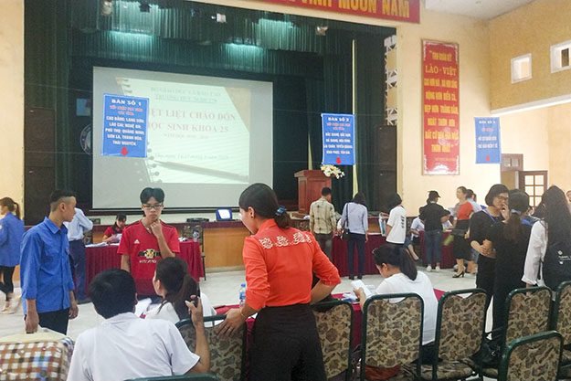 Trong quá trình nhập học các em luôn nhận được sự đón tiếp chu đáo của các cán bộ, giáo viên và đặc biệt là sự giúp đỡ tận tình của Đoàn Thanh niên cùng 55 bạn khoá trên đến từ đội xung kích nhà trường. Các bậc cha mẹ và tân học sinh, sinh viên được chỉ dẫn cẩn thận từ khâu nộp hồ sơ nhập học, cách thức làm các thủ tục nhập học và nhận trang cấp đồ dùng cá nhân…Nhiều hình ảnh rất cảm động: các bạn xung kích đón các em khối 10 ngay tại cổng trường, xách giúp va li, thăm hỏi sức khỏe rồi đưa tới nơi nhập học; nhiều bạn xung kích mặt đẫm mồ hôi, tay ôm sách vở, chăn màn nhưng trên môi vẫn là nụ cười tươi rói. Mới chỉ một năm trước thôi, các em cũng nhập trường trong nhiều bỡ ngỡ mà giờ đây, các em năng động, tự tin, sẵn sàng giúp đỡ các em mới đến với tinh thần tình nguyện của tuổi trẻ. Nhiều phụ huynh học sinh đưa con em mình không giấu được niềm vui và sự tin tưởng vào sự chu đáo trong cách đón tiếp, sắp xếp phòng ở cho học sinh. Kết thúc ngày 17/8, nhà trường đã đón đầy đủ 100% chỉ tiêu mà Bộ Giáo dục và Đào tạo giao.