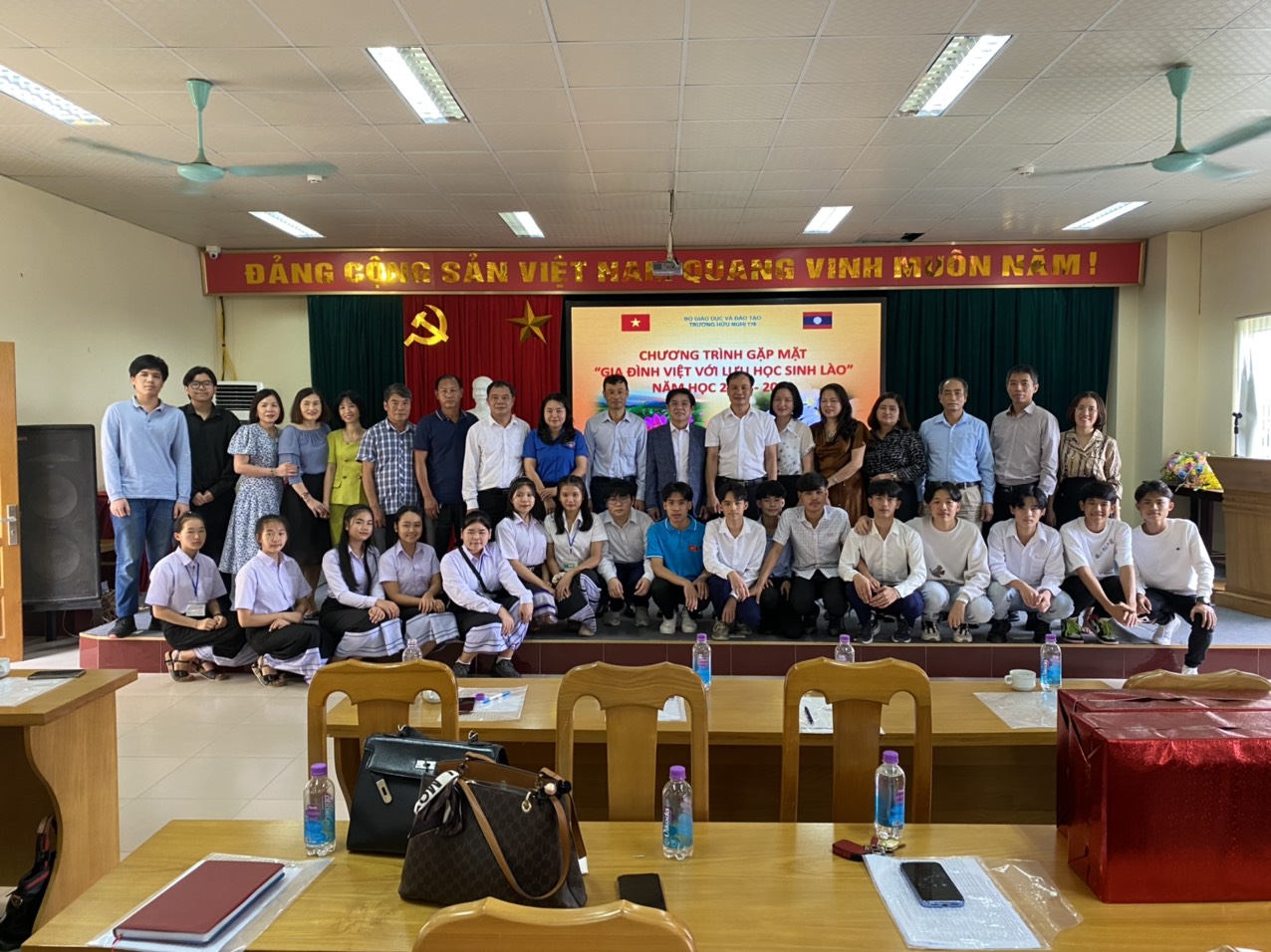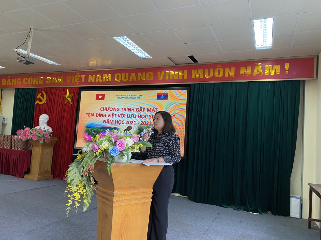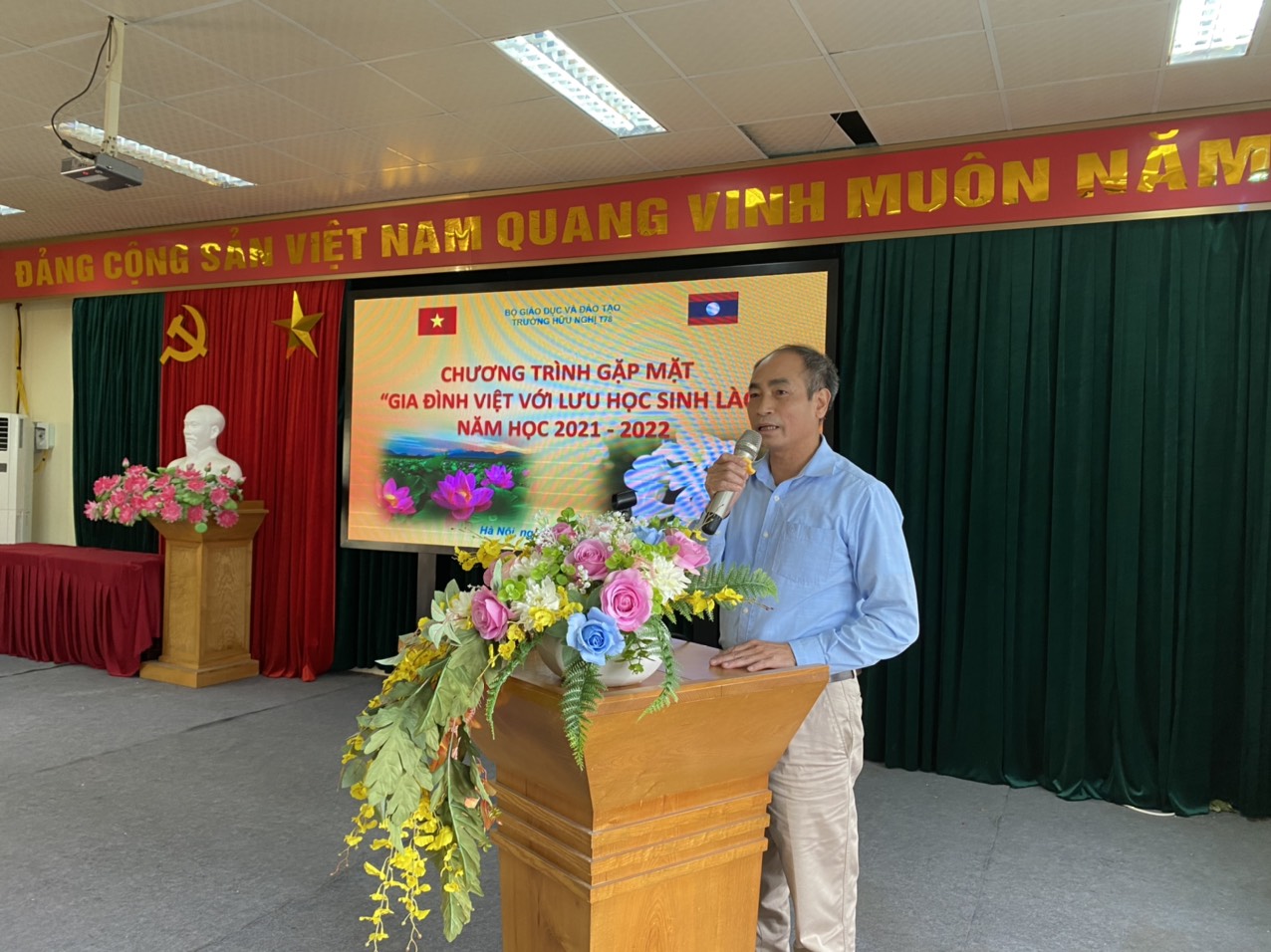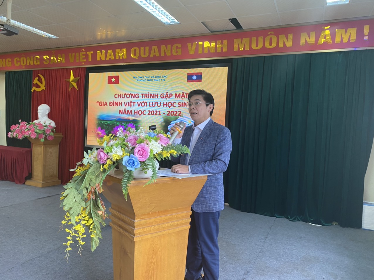 Phát biểu tại buổi lễ, đồng chí Nguyễn Thị Hải Yến- Đảng ủy viên, Phó Hiệu trưởng nhà trường đã nhấn mạnh mục đích, ý nghĩa tốt đẹp của của chương trình “ Gia đình Việt với Lưu học sinh Lào” là nhằm tạo sự gắn kết giữa LHS với các gia đình Việt, đem đến cho các em một mái ấm, những người cha, người mẹ, người anh chị em thứ hai trên đất Việt để các em thấy ấm áp như trên đất Lào. Đây cũng là cơ hội thuận lợi giúp các em được thực hành tiếng Việt, được giao lưu, tìm hiểu đời sống văn hóa và con người Việt Nam từ đó hòa nhập với cuộc sống cộng đồng tốt hơn, tự tin hơn trong sinh hoạt, học tập. Qua chương trình, góp phần tăng cường mối quan hệ hữu nghị giữa nhà trường – địa phương, doanh nghiệp, giữa LHS Lào với người dân Việt Nam, góp phần củng cố, vun đắp mối quan hệ hữu nghị đặc biệt Việt Nam – Lào.