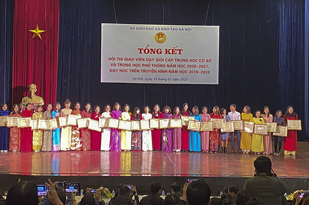 Trước đó, chiều 18/01/2021, tại hội trường trường THPT chuyên Hà Nội-Amsterdam, cô giáo Quản Thị Huệ, giáo viên Địa lý của nhà trường cũng đã vinh dự nhận giấy khen đạt giải Nhì hội thi giáo viên dạy giỏi Thành phố cấp Trung học phổ thông, năm học 2020-2021.